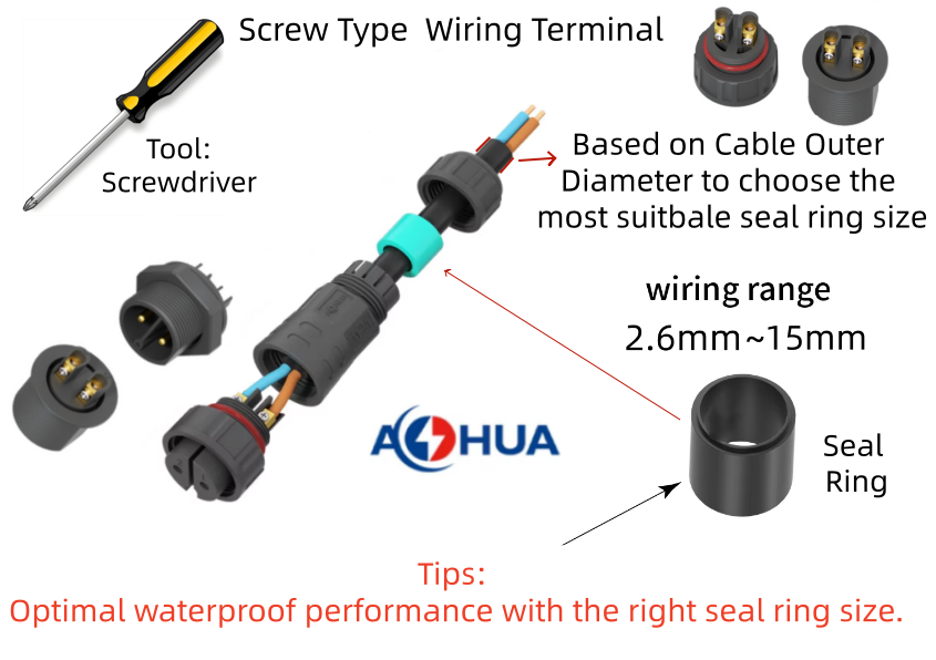 A suitable size of the seal ring can help the connector achieve better waterproof effect,