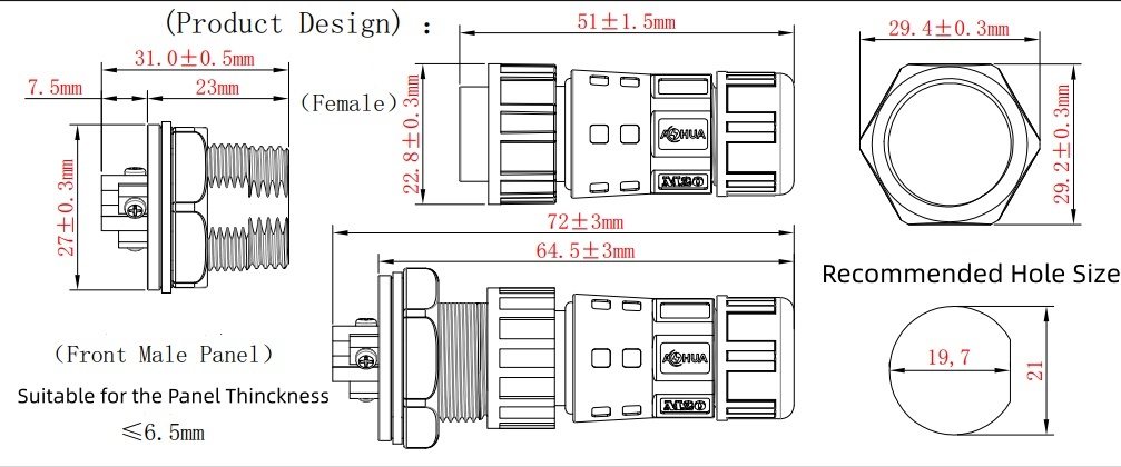 There are Wire to Panel and pre-wired type connector to meet your needs.
