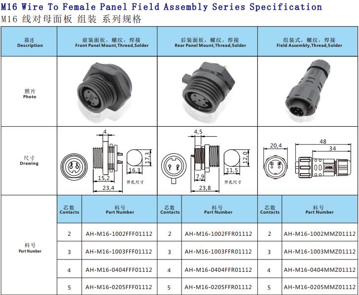 1. Nylon material, wire to rear female panel, solder type.