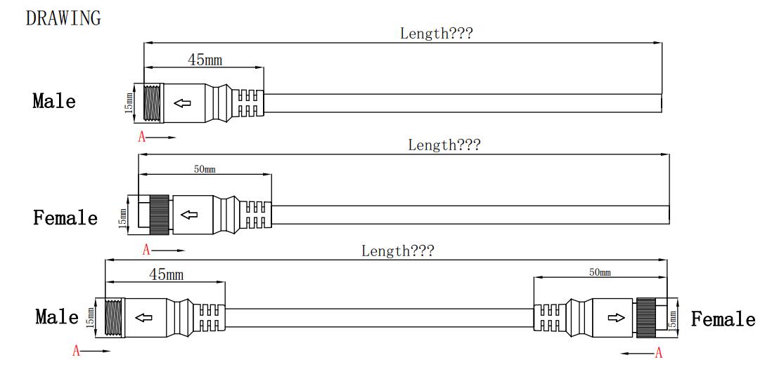 1. M12 aviation connector, male/female, 2/3/4/5/6 pin for choices.