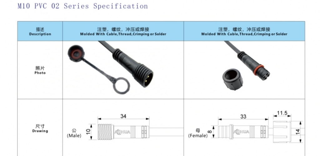 | M10-02 | 4 | AH-M10-0204FMP/MFP02131 | 60V | 2A | ≤0.3mm² | 3.0mm-5.0mm |