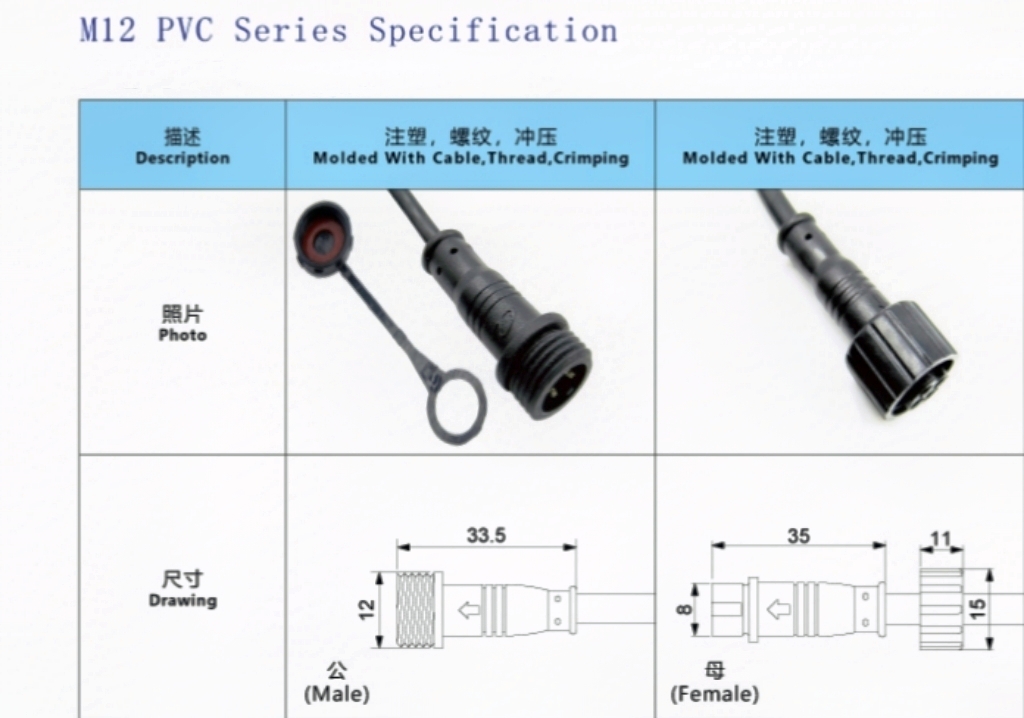 | M12 | 3 | AH-M12-0203FMP/MFP01131 | 110V | 2A | ≤0.3mm² | 3.0mm-5.0mm |