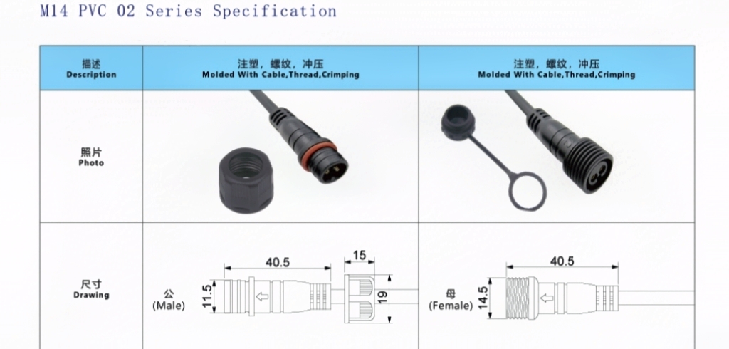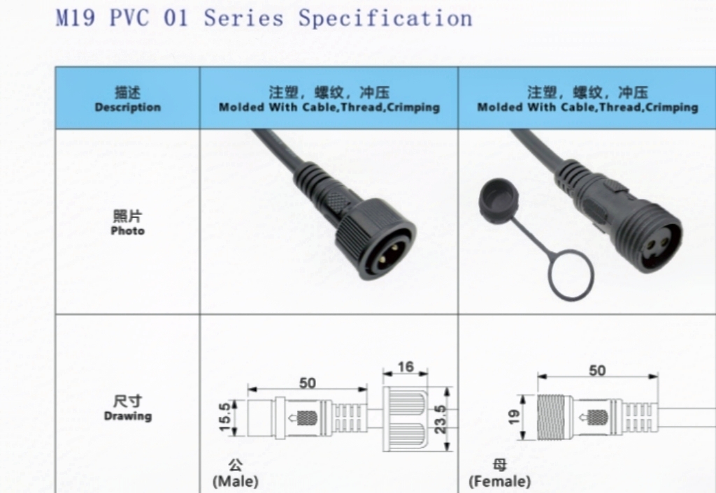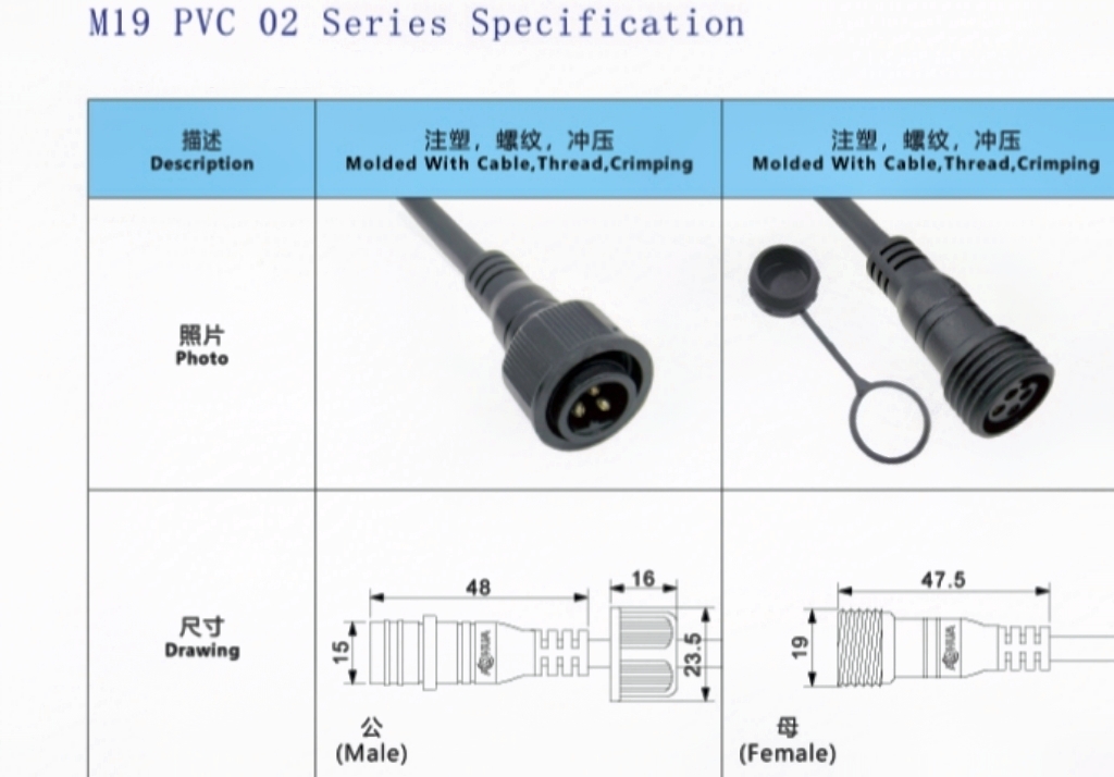 | Assembly Connector | Wire to wire /Wire to panel waterproof connector,L/T screw type connector |