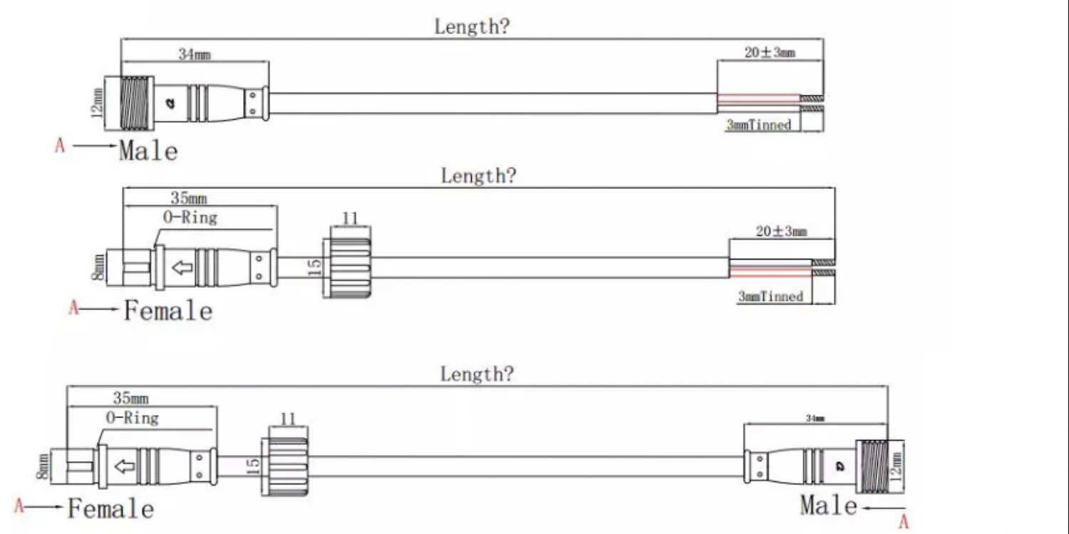 4. Wire Length:Any length of the cable is available and terminal processed.