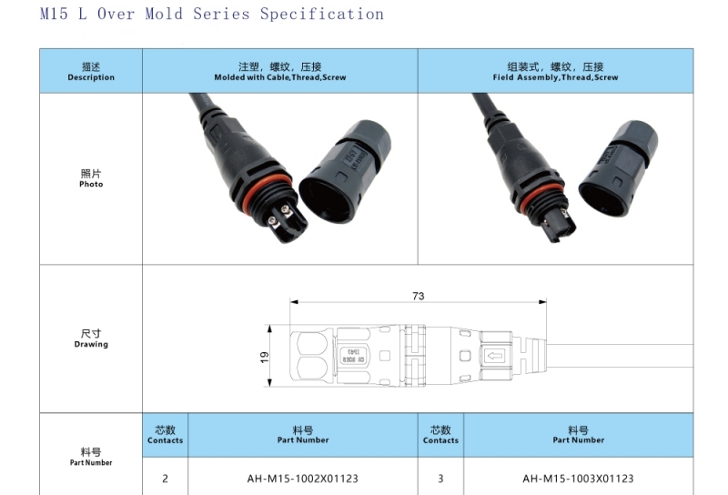 screw type cable connector M15 10A 2 3 pin 0.5mm waterproof screw type cable connector