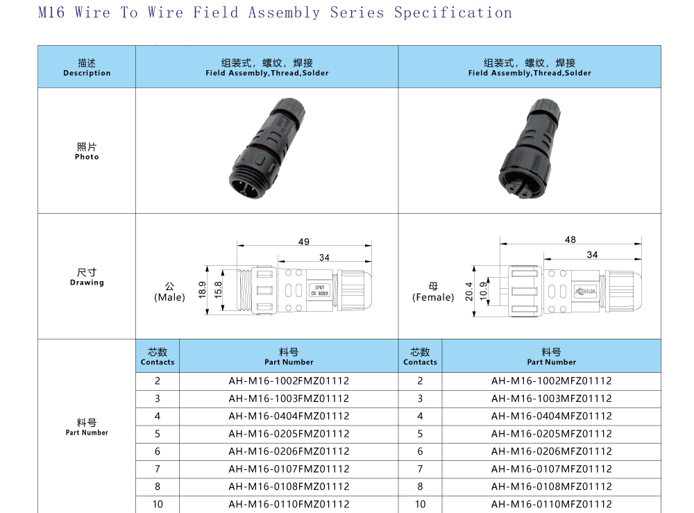 IP67/IP68 adcanced waterproof connector |