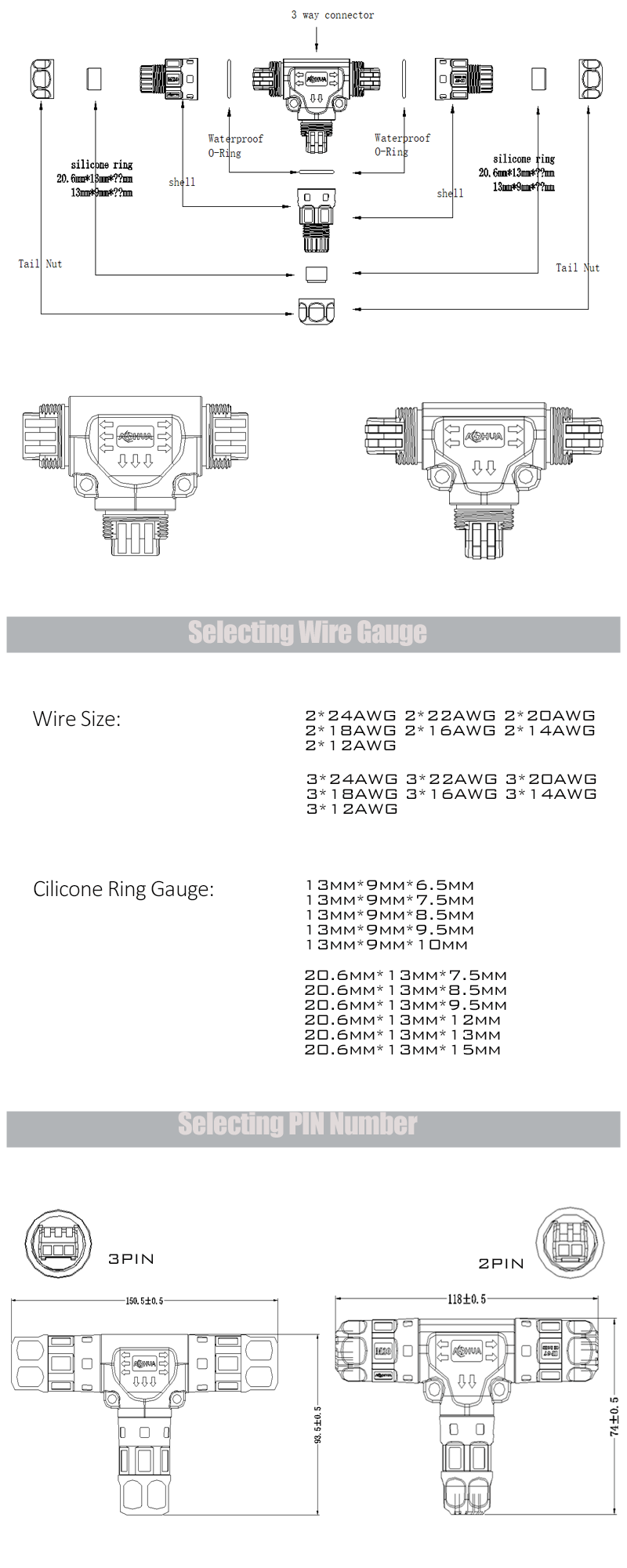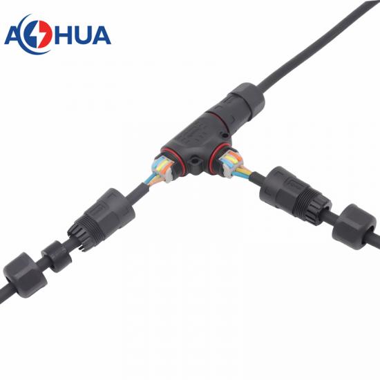 1 in 2 out T connector 2pin 3pin 4pin waterproof ,screw fixing type conductor