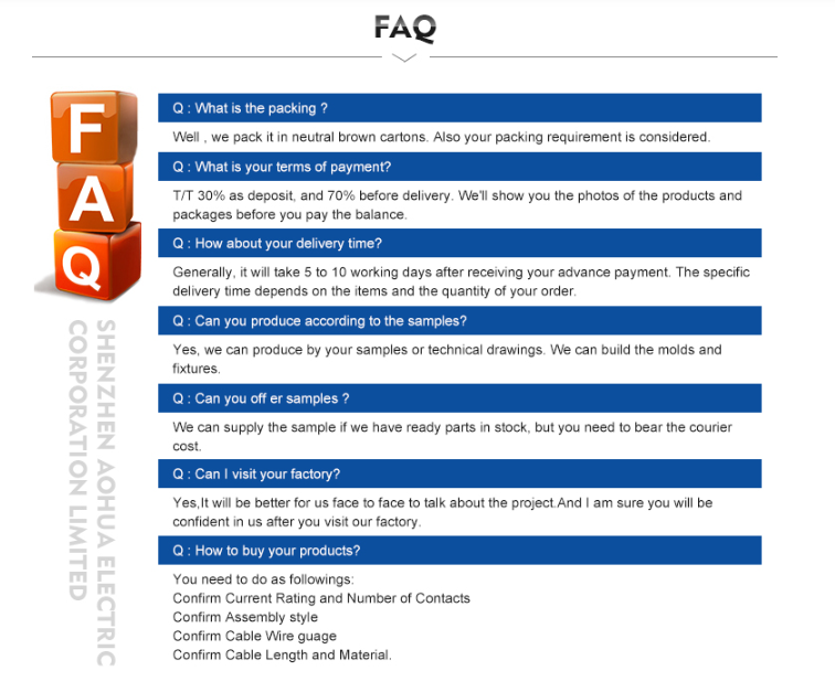 2. Male to female, assemble easily;2, 3, 4, 5,6,7,8 pin for choices,2,3 pin passed UL,CE,RoHS,TUV certificate.