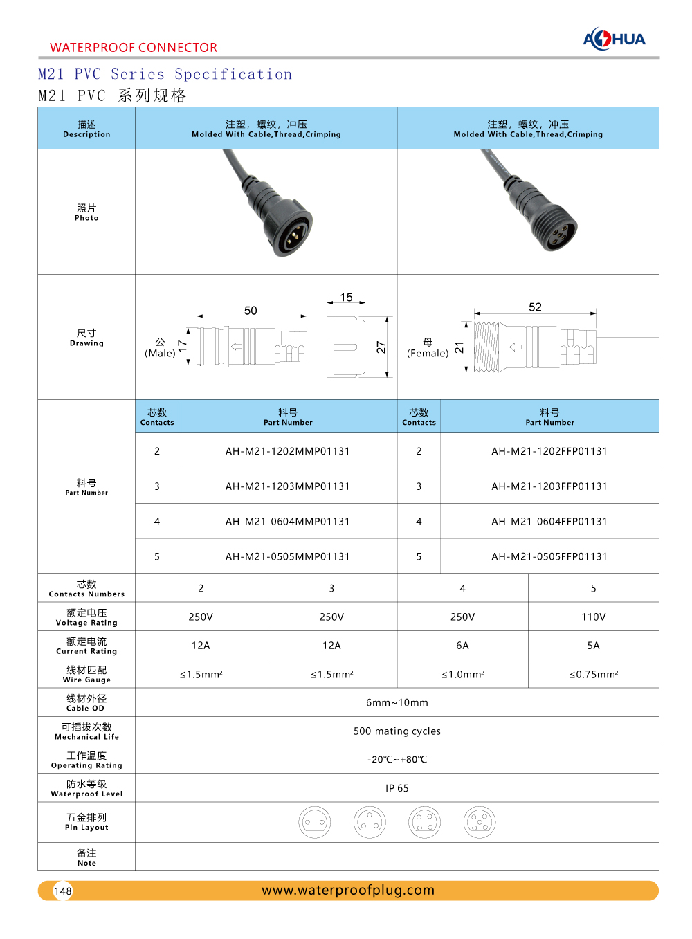 M21 Male Female Electrical Cable Connector 2 3 4 5 Pin Solder Type