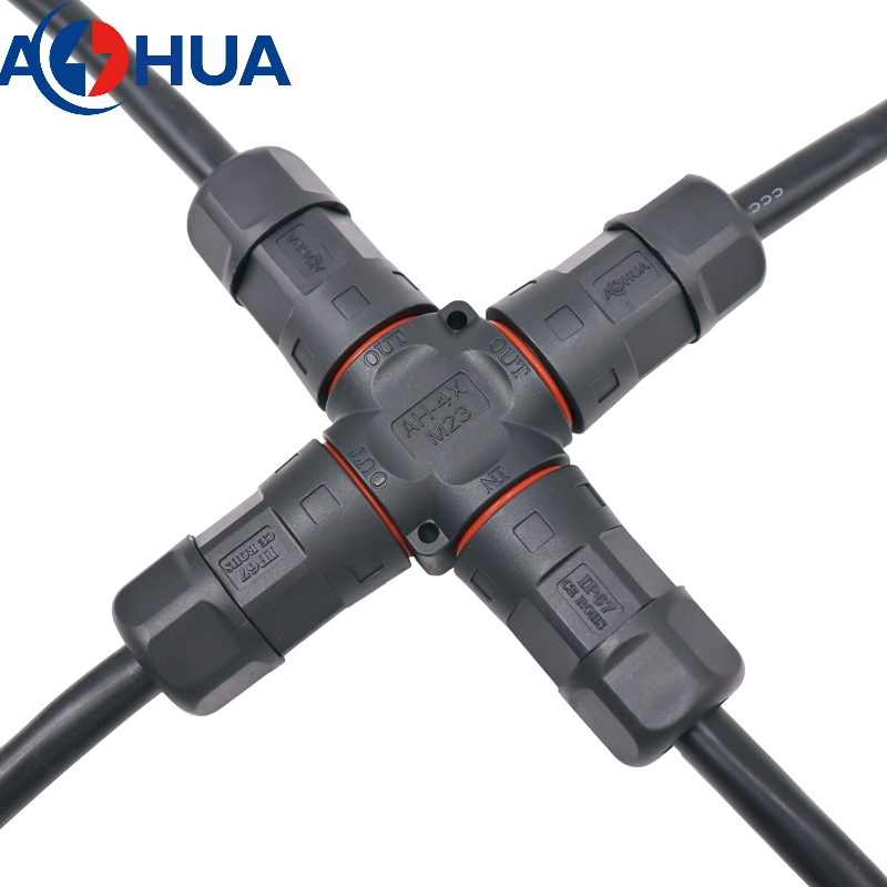 /M23 Outdoor X Type 4 Way Waterproof Screw Wire Connector
