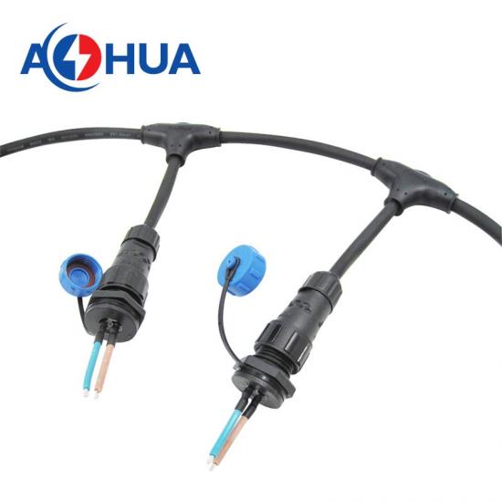 Outdoor customized cable 1 to 2 ip65 T type connector