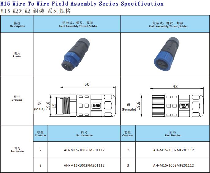 Standard LED cable M15 waterproof connector male female type 2 3 pin