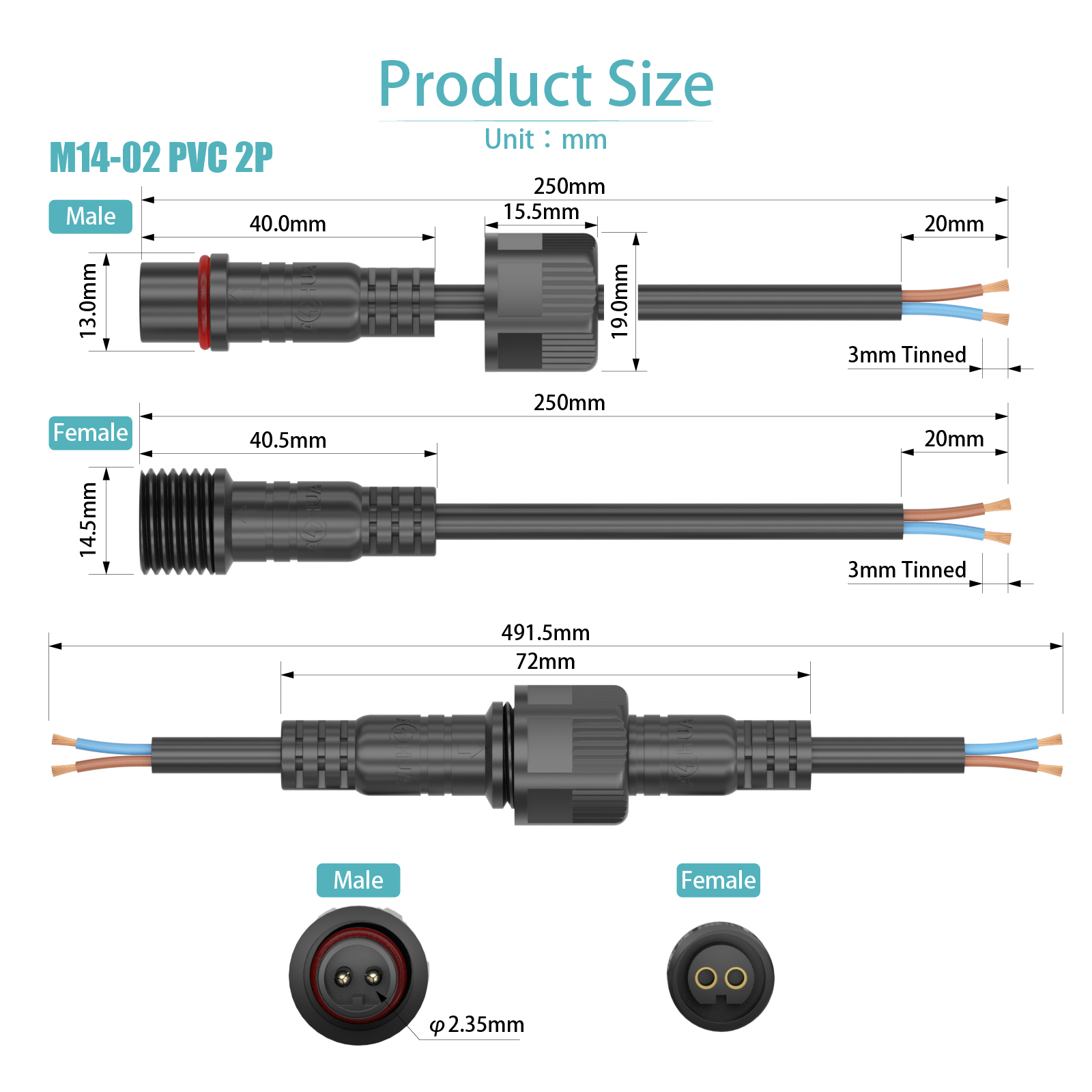 Waterproof Rating: Generally achieves IP65/IP67, suitable for outdoor and damp environments in LED lighting applications (e.g., landscape lighting, LED strip chaining);