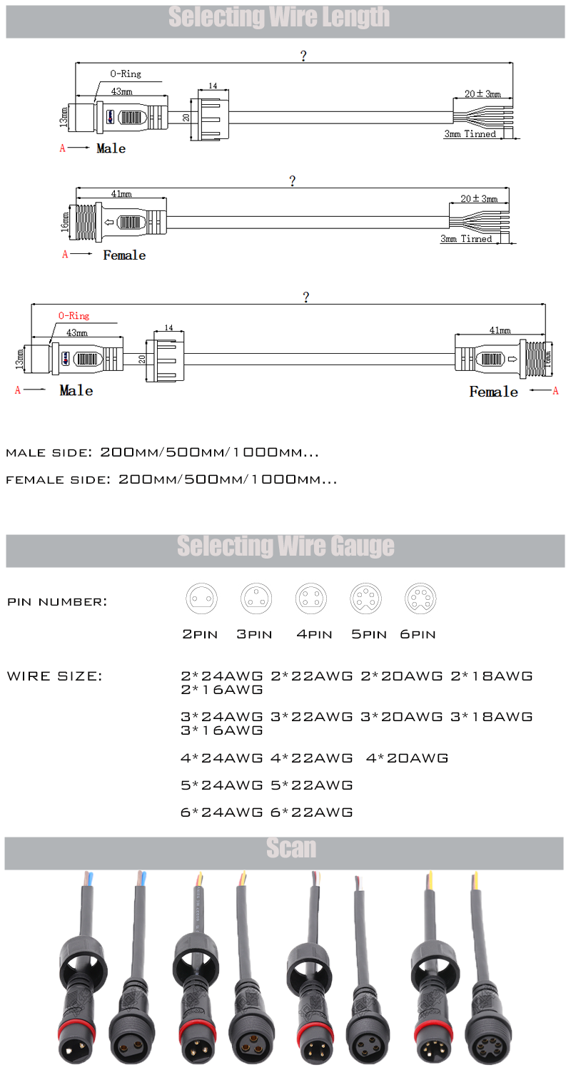 M16 PVC connector it can match with 2pin 3pin 4pin 5pin 6pin wire, and the current is between 4A-6A;