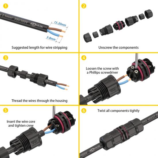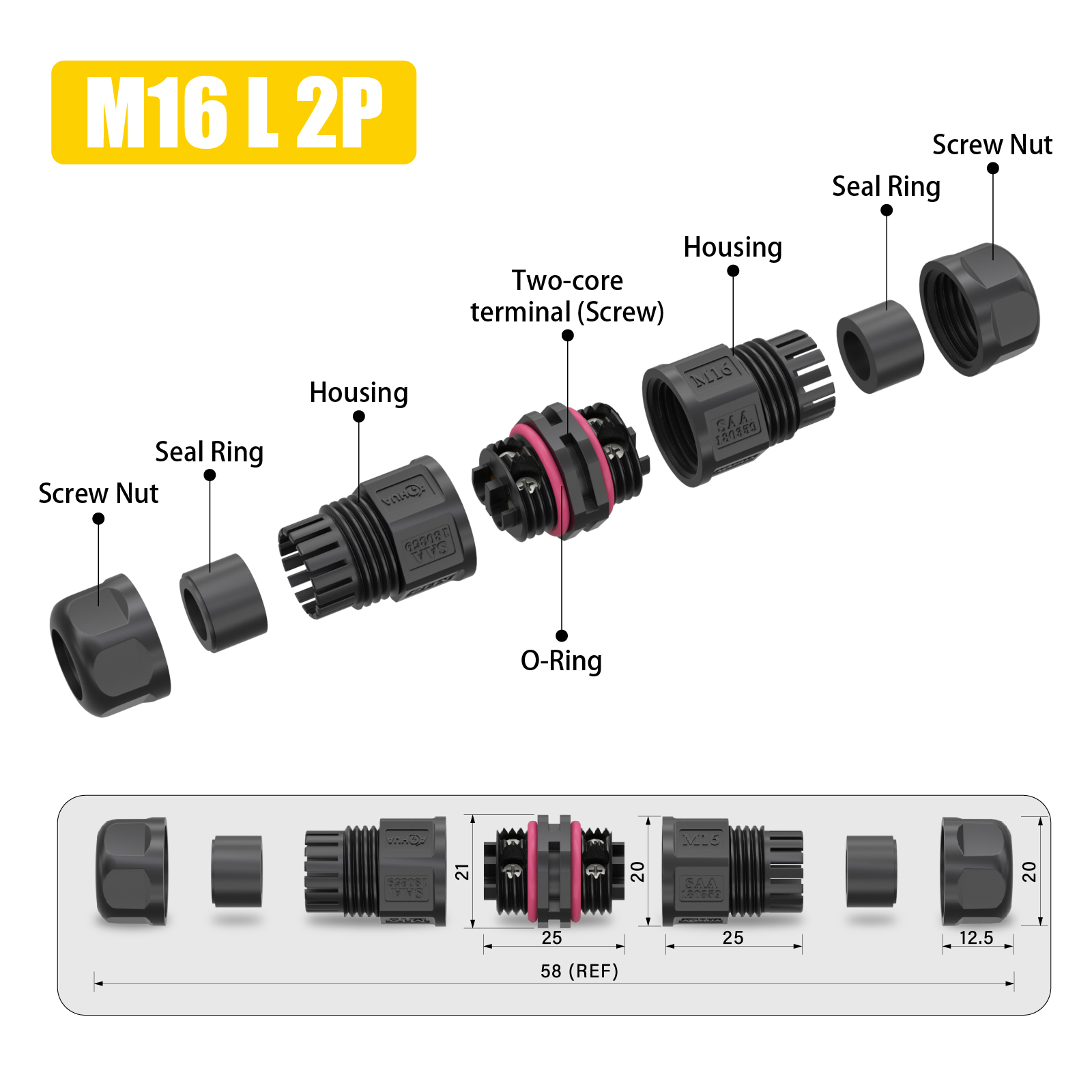 M16 assembly waterproof connector can be combined with L/T/Y/F Type connectors to provide a solution for LED lamp modules.
