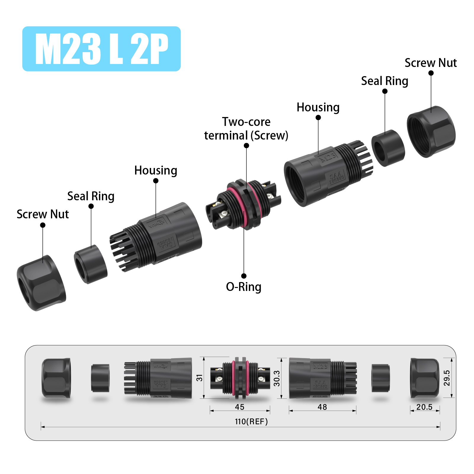 A suitable size of the seal ring can help the connector achieve better waterproof effect,