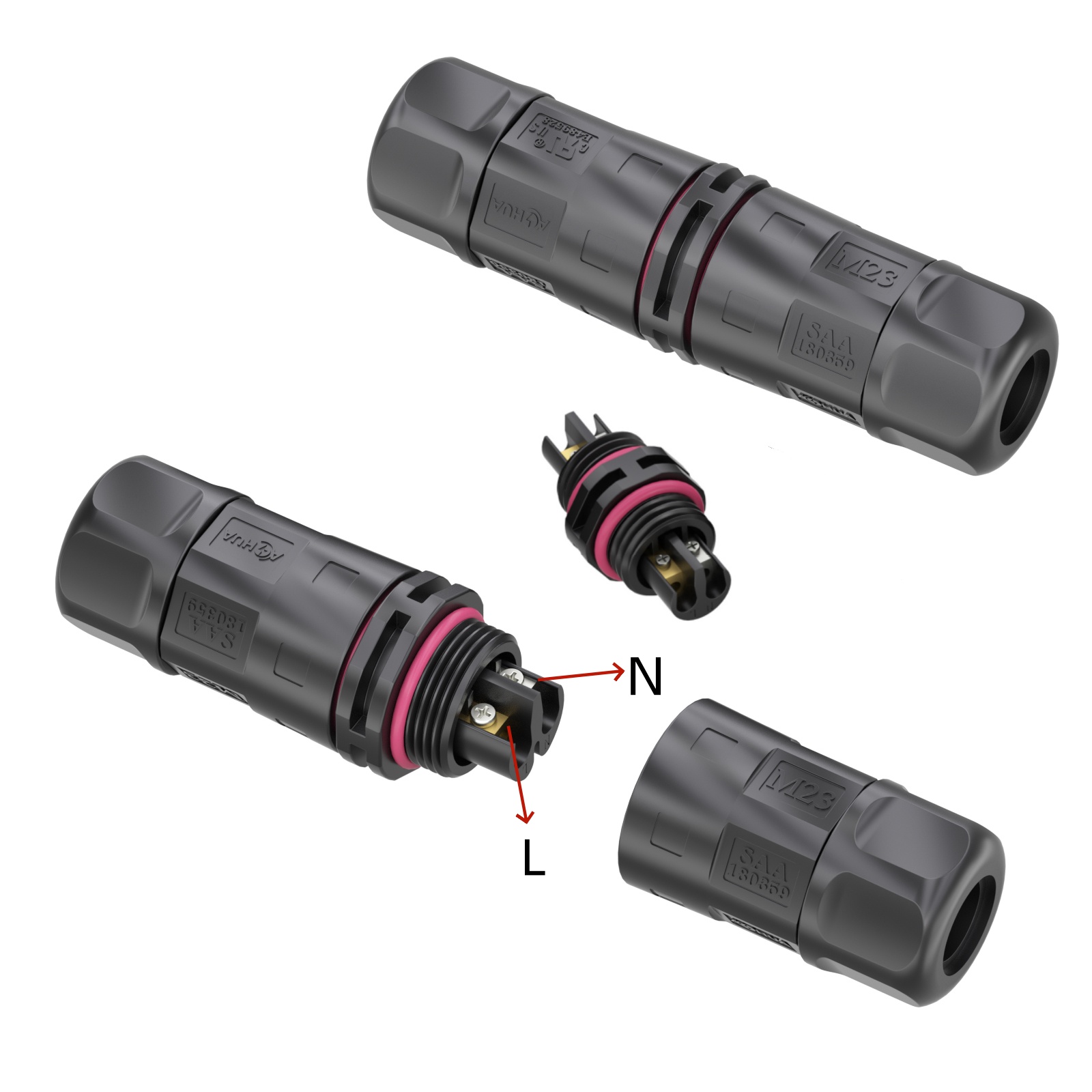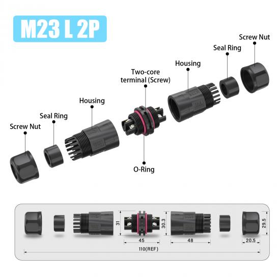M23 assembly waterproof connector can be combined with L/T/Y/F Type connectors to provide a solution for LED lamp modules.