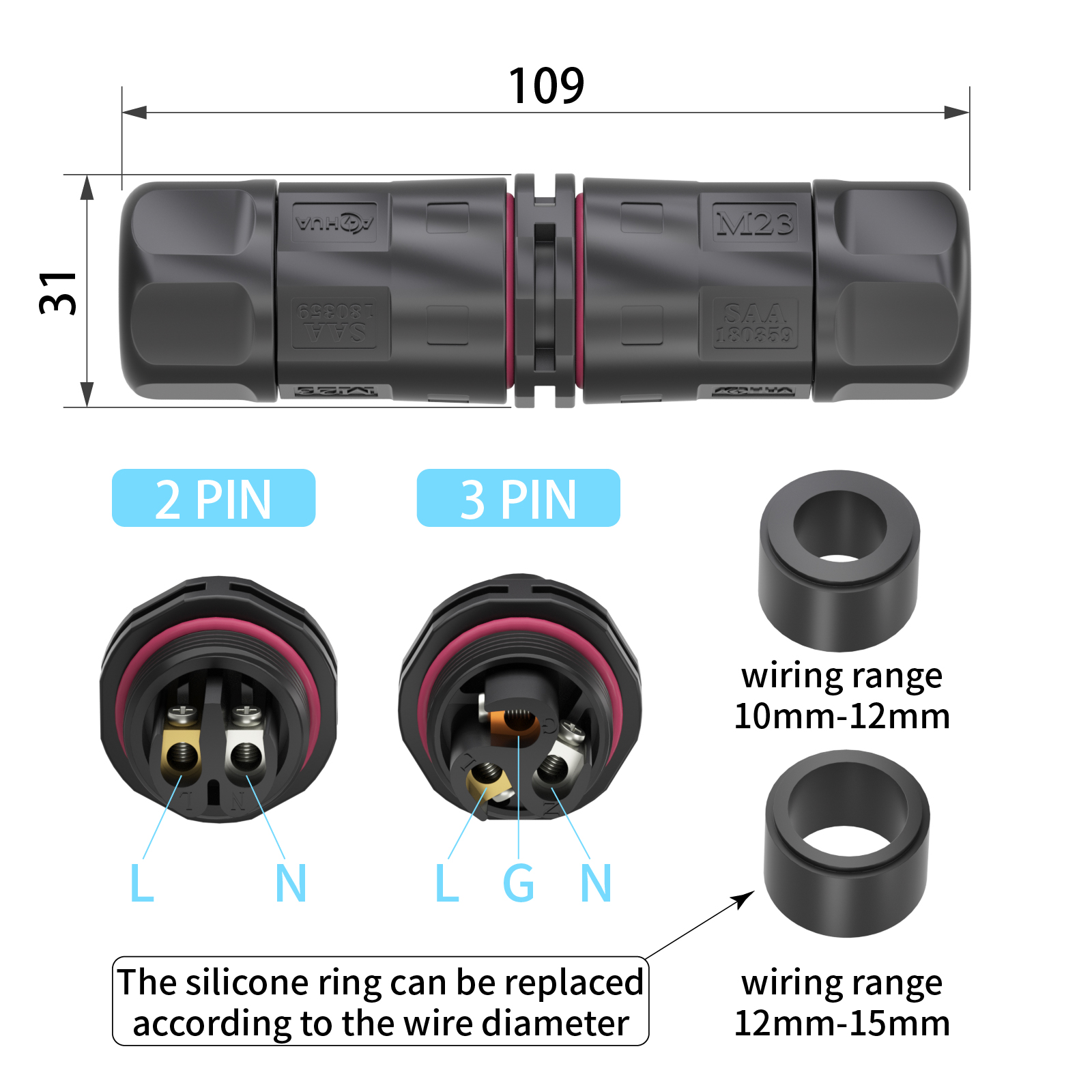 5.Connection Cable OD: 7.5~15mm.