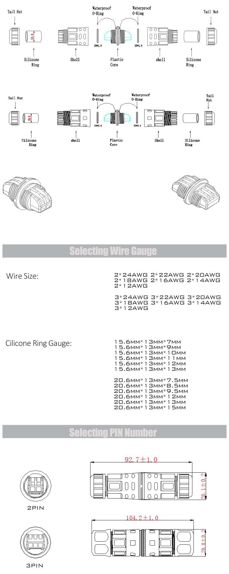 2.What is the Wire Outside Diameter that you use on the connector? like 9.2mm